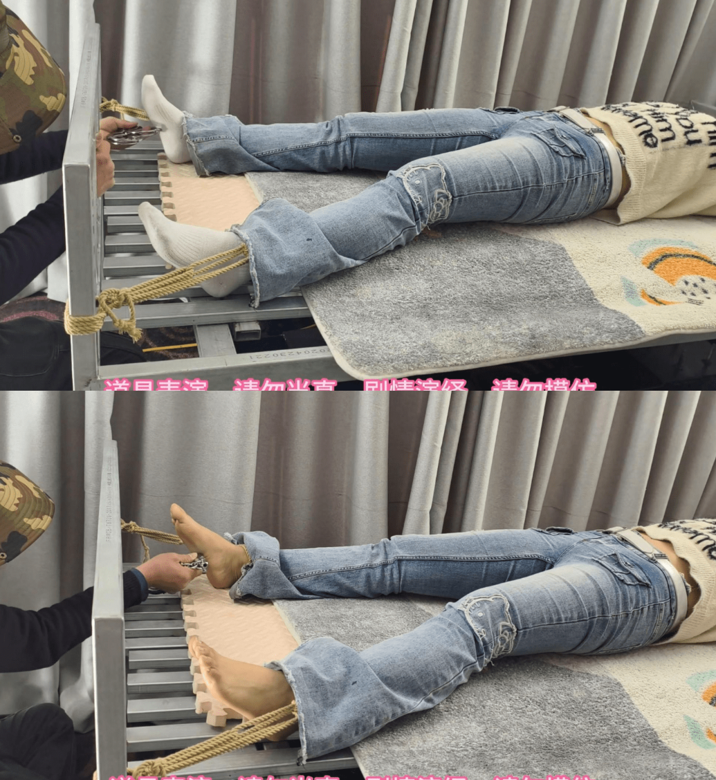 大学生铁床大字捆绑,挠脚心游戏,十字架大字捆绑挣扎游戏